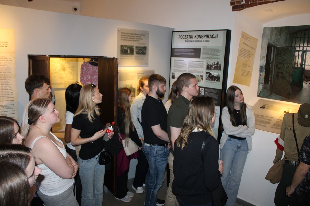21 maja 2025 r. młodzież z VII L.O. w Kielcach oraz szwedzkiej Drottning Blankas Gymnasieskola Sundsvall zwiedziła dawne więzienie kieleckie i uczestniczyła w warsztatach o postawach Polaków wobec komunizmu w PRL. Goście odwiedzili nas w ramach projektu Experience the World Around You: A Celebration of Language and Culture organizowanego z okazji Światowego Dnia Języka Angielskiego przez SODMiN w Kielcach.