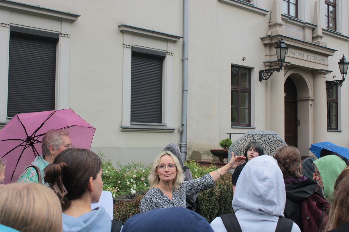 11 września 2025 r. cztery klasy pierwsze z liceum im. Stefana Żeromskiego w Kielcach ruszyły z przewodnikami OMPiO spacerem po „Klerykowie”.