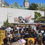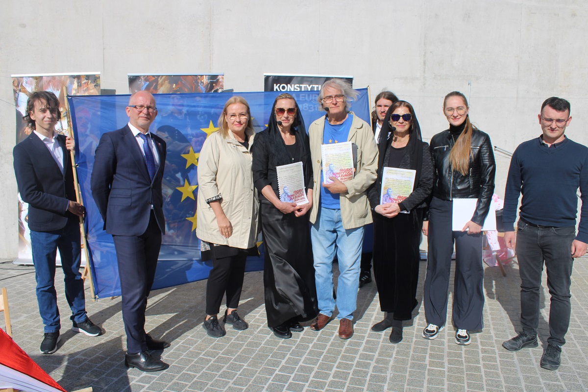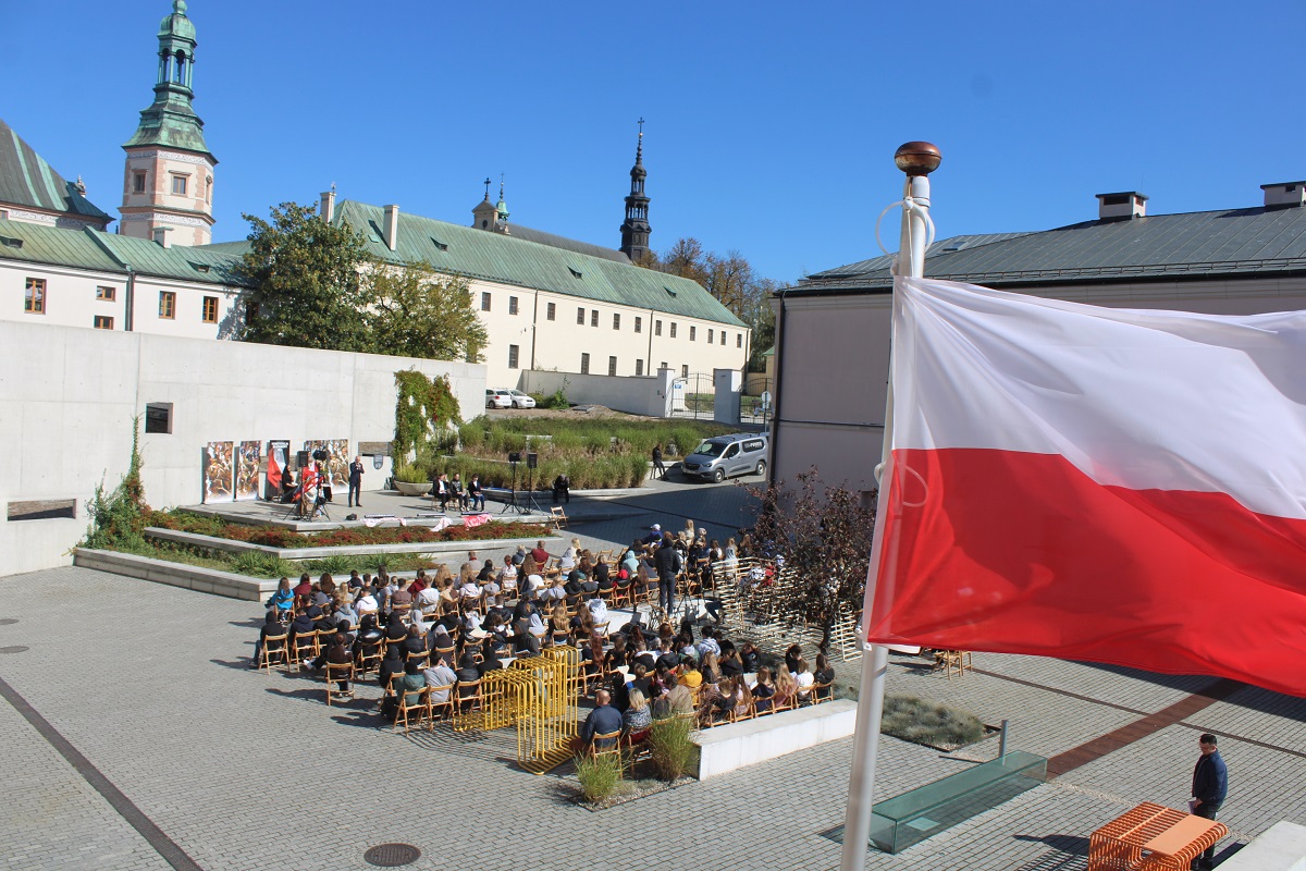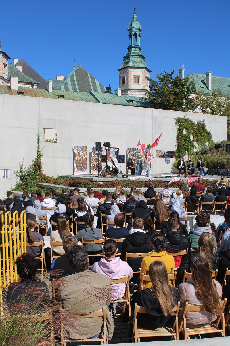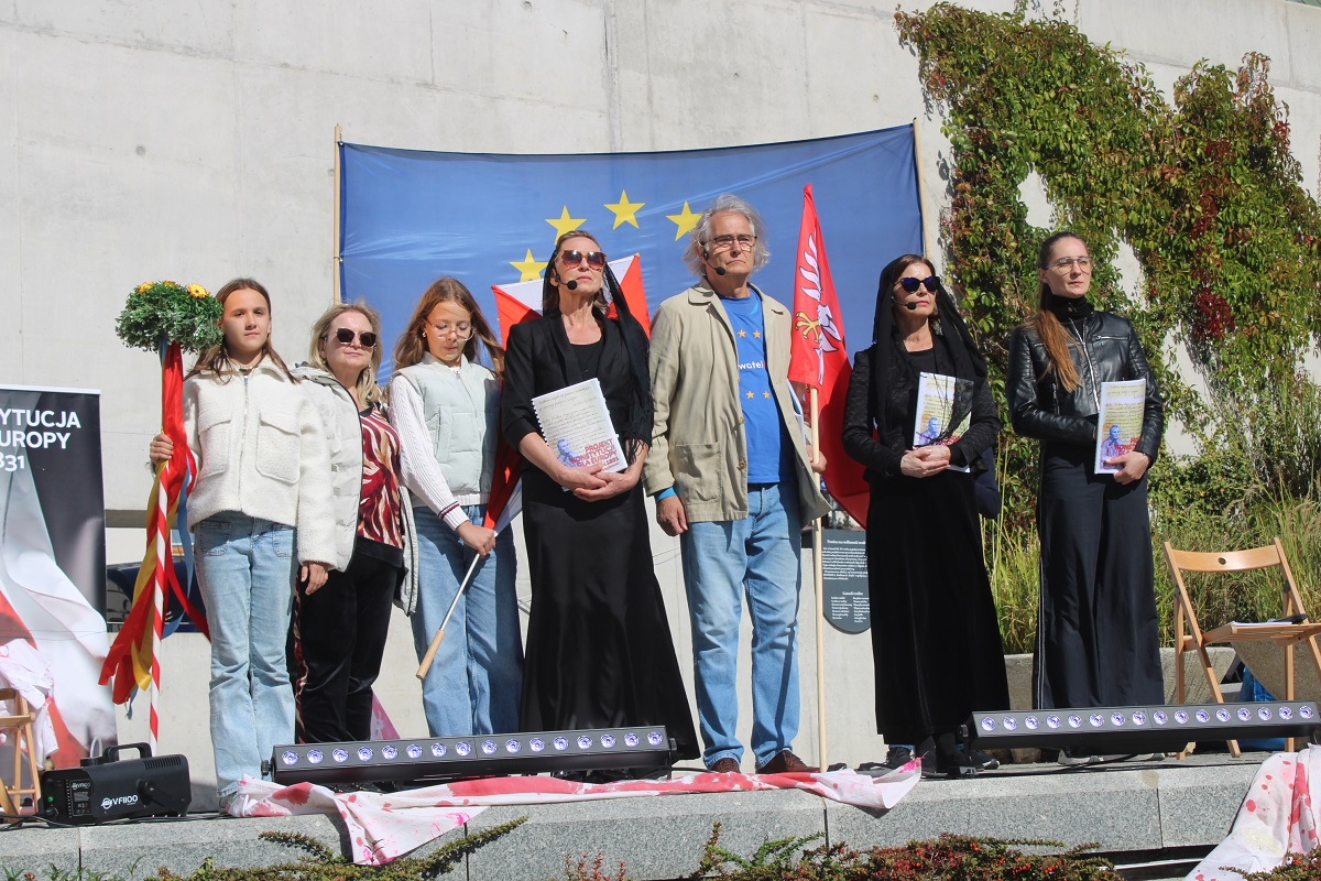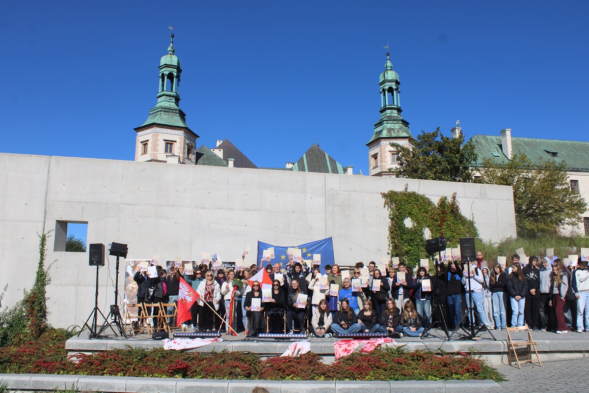 26 września 2025 r. gościliśmy na Wzgórzu Zamkowym „Wędrowne czytanie Konstytucji dla Europy Wojciecha Bogumiła Jastrzębowskiego” przygotowane dla kieleckiej publiczności przez Fundację „My, obywatele Unii Europejskiej”. Na scenie wystąpiła Monika Goździk, Hanna Bieniuszewicz, Olgierd Łukaszewicz, Bartłomiej Zapała oraz Hanna Jura i Zofia Gębska.