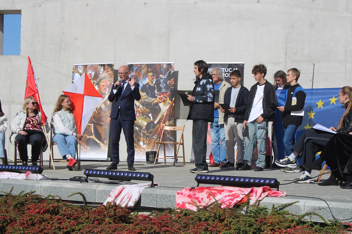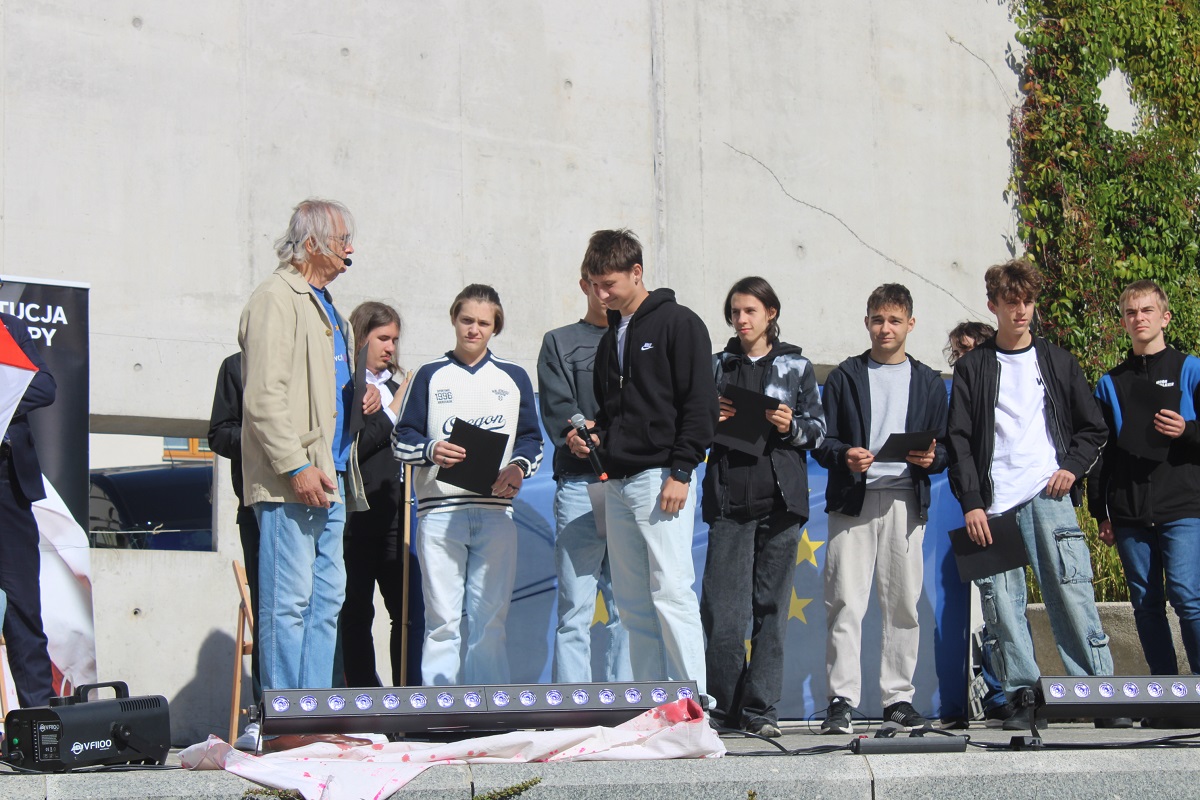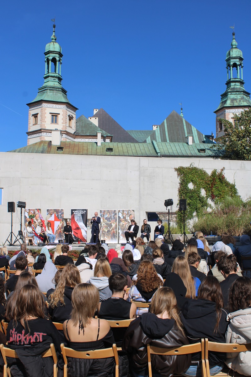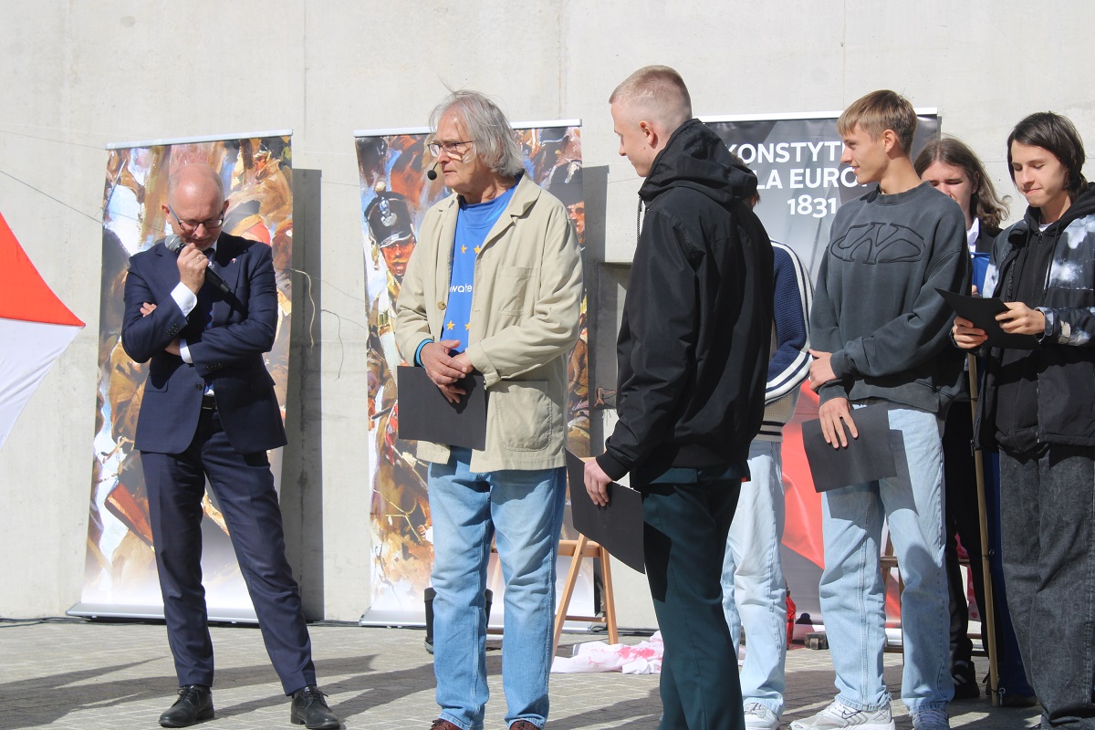 Po odczytaniu fragmentów Konstytucji z 1831 r. po polsku, angielsku i ukraińsku młodzież z kieleckiego liceum Śniadeckiego, Słowackiego oraz Zespołu Szkół Zawodowych nr 1 wzięła udział w dyskusji o współczesnym znaczeniu idei Wojciecha Jastrzębowskiego dla jednoczącej się Europy.