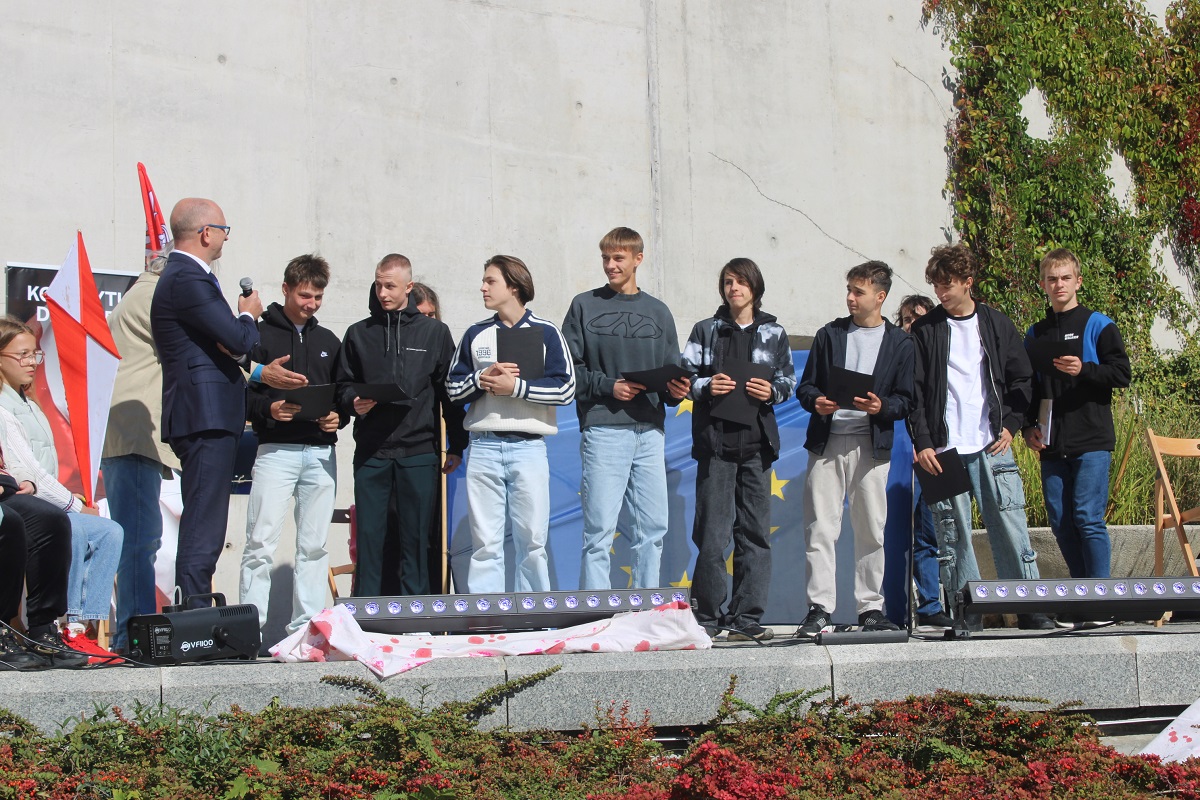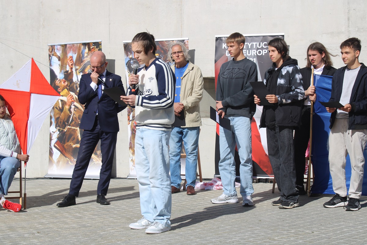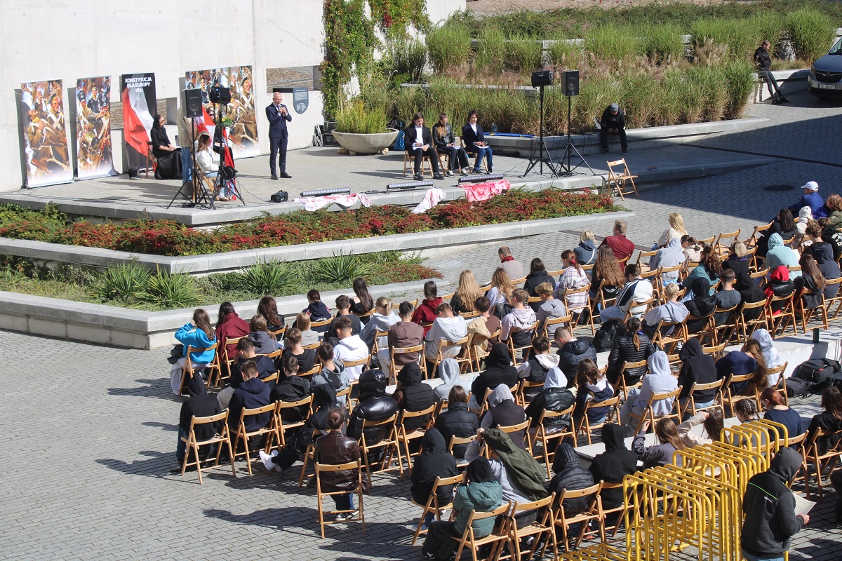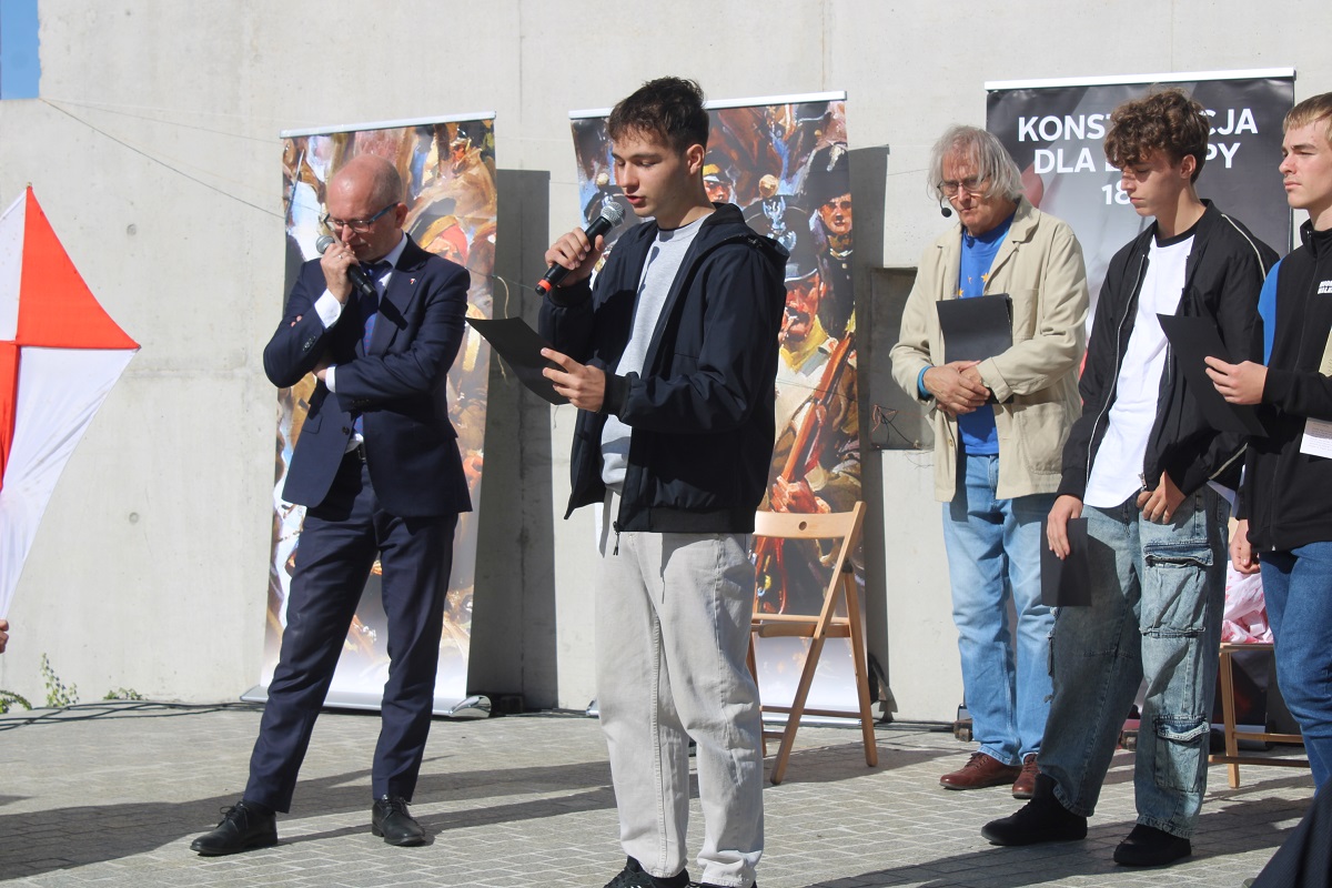 Po odczytaniu fragmentów Konstytucji z 1831 r. po polsku, angielsku i ukraińsku młodzież z kieleckiego liceum Śniadeckiego, Słowackiego oraz Zespołu Szkół Zawodowych nr 1 wzięła udział w dyskusji o współczesnym znaczeniu idei Wojciecha Jastrzębowskiego dla jednoczącej się Europy.