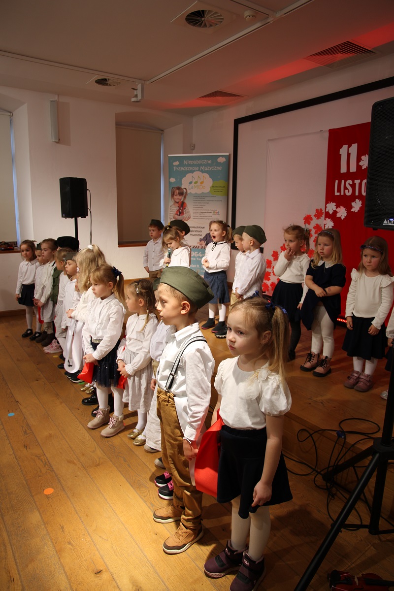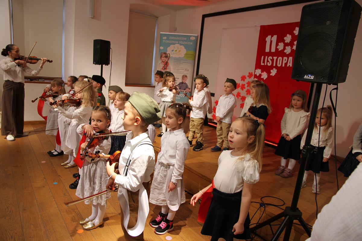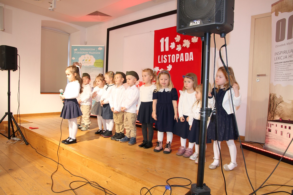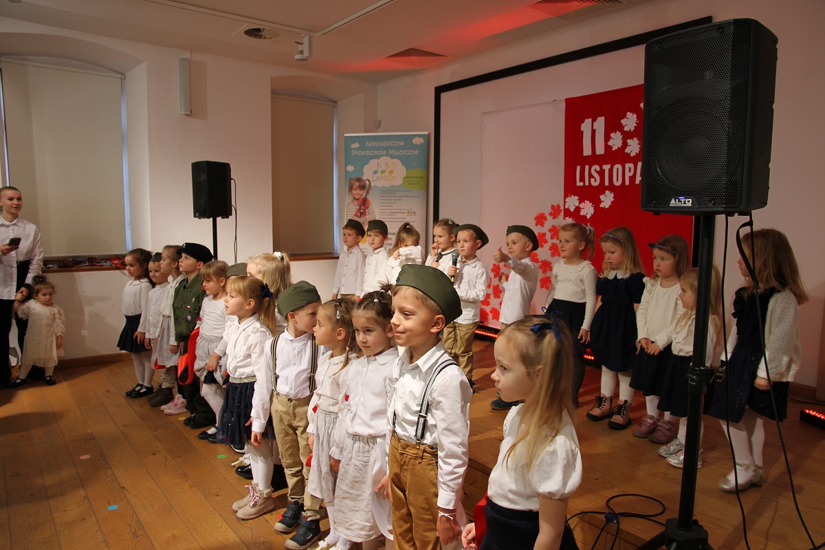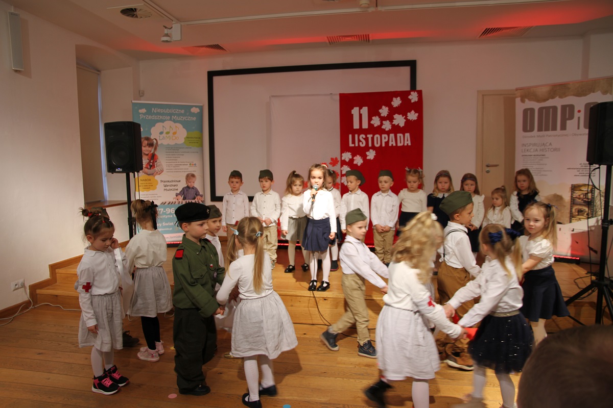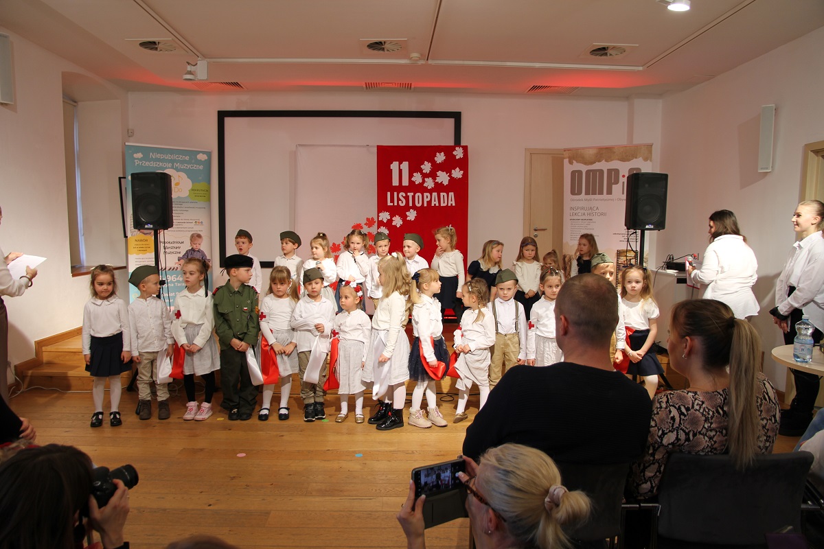 6 listopada 2025 r. na sali konferencyjnej OMPiO jak co roku odbył koncert piosenek patriotycznych z okazji Święta Niepodległości Polski zorganizowany przez Przedszkole Muzyczne „Lamido” .