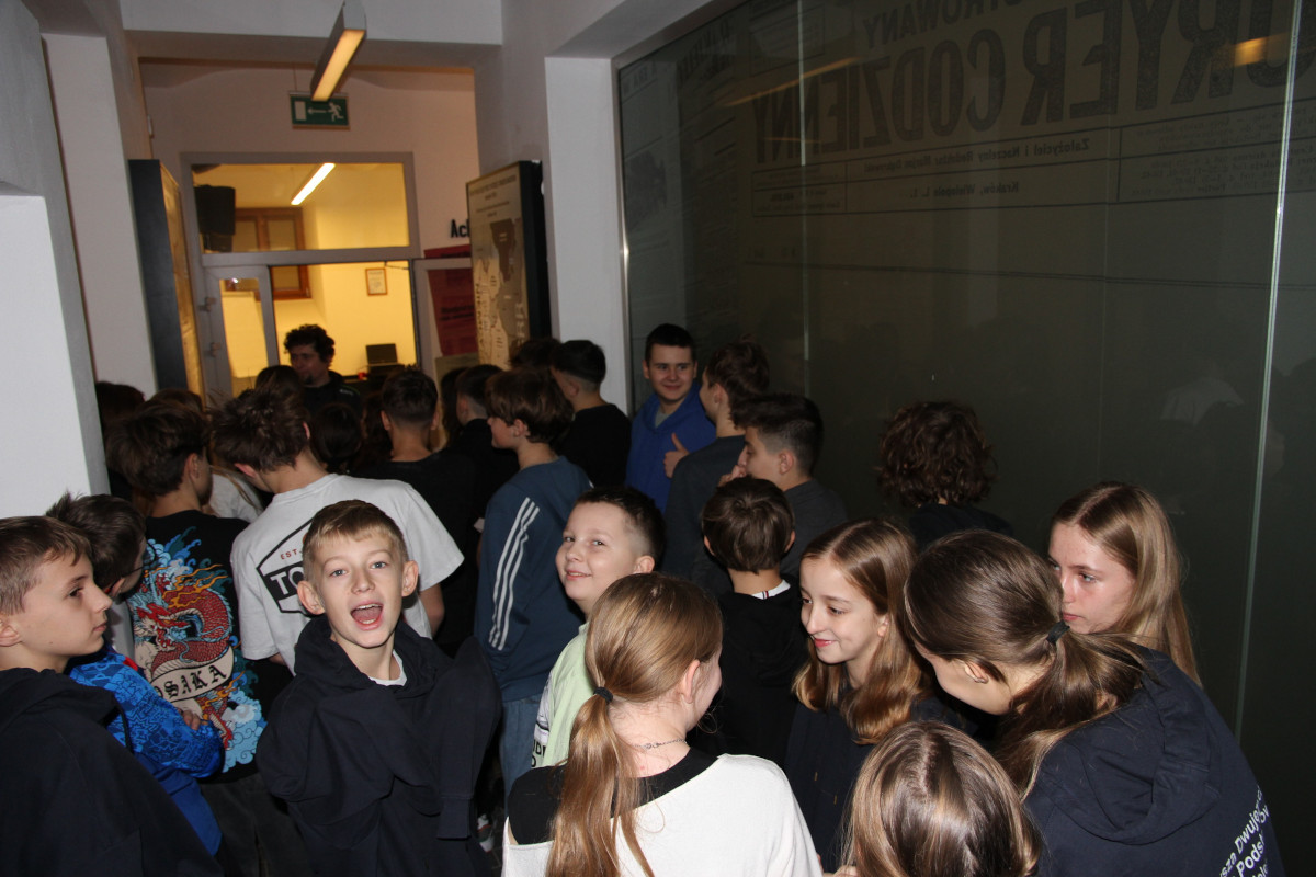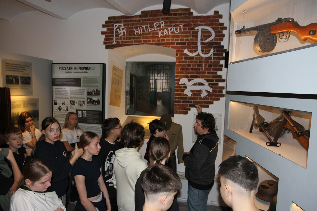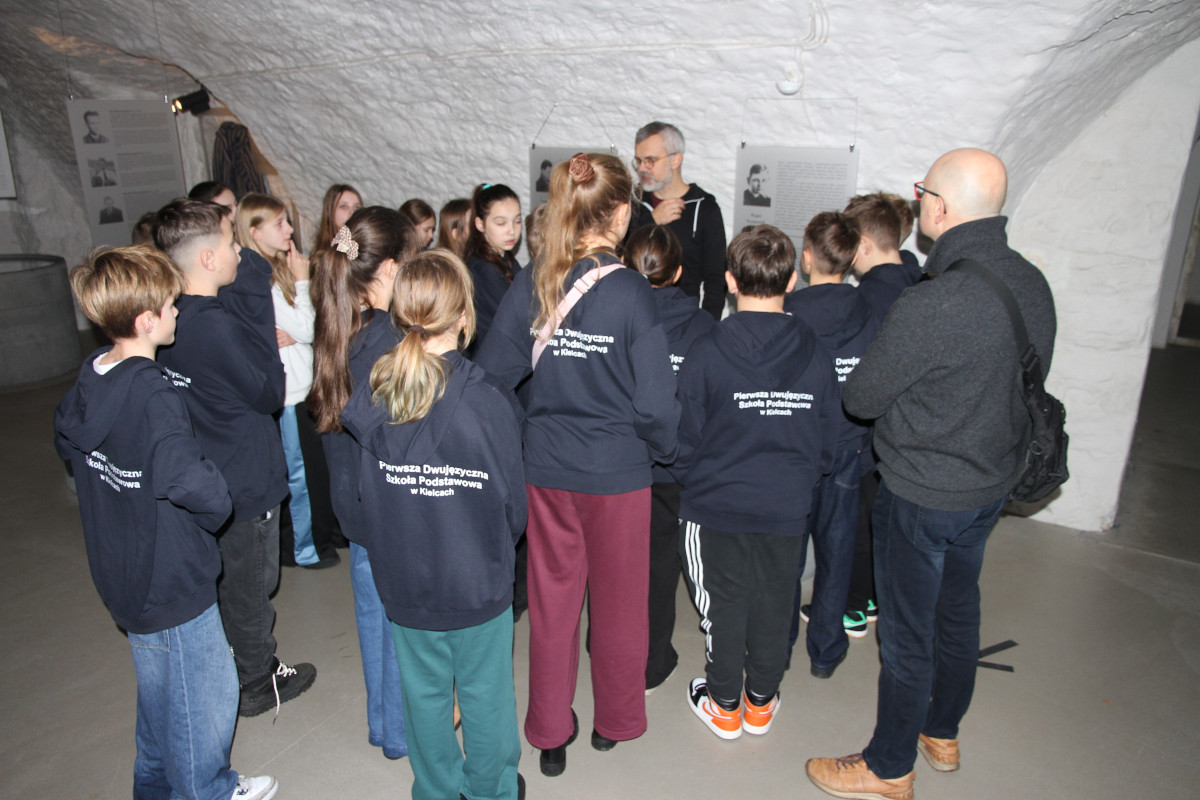 Dwujęzyczna SP Kielcach Opublikowano: 11 grudnia 2025 11 grudnia 2025 r. dwie klasy uczniów z Pierwszej Dwujęzycznej Szkoły Podstawowej w Kielcach zwiedziły dawne więzienie kieleckie i uczestniczyły w warsztatach o II wojnie światowej na kielecczyźnie. Zapraszamy do galerii zdjęć: