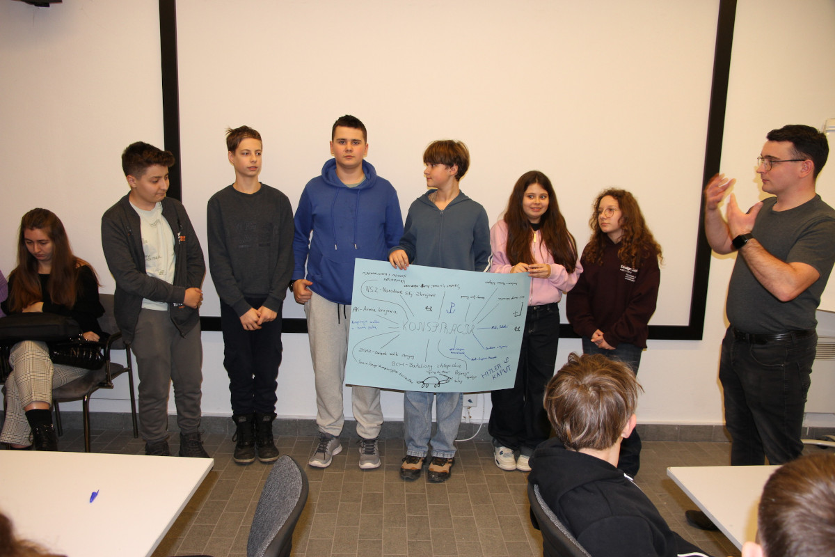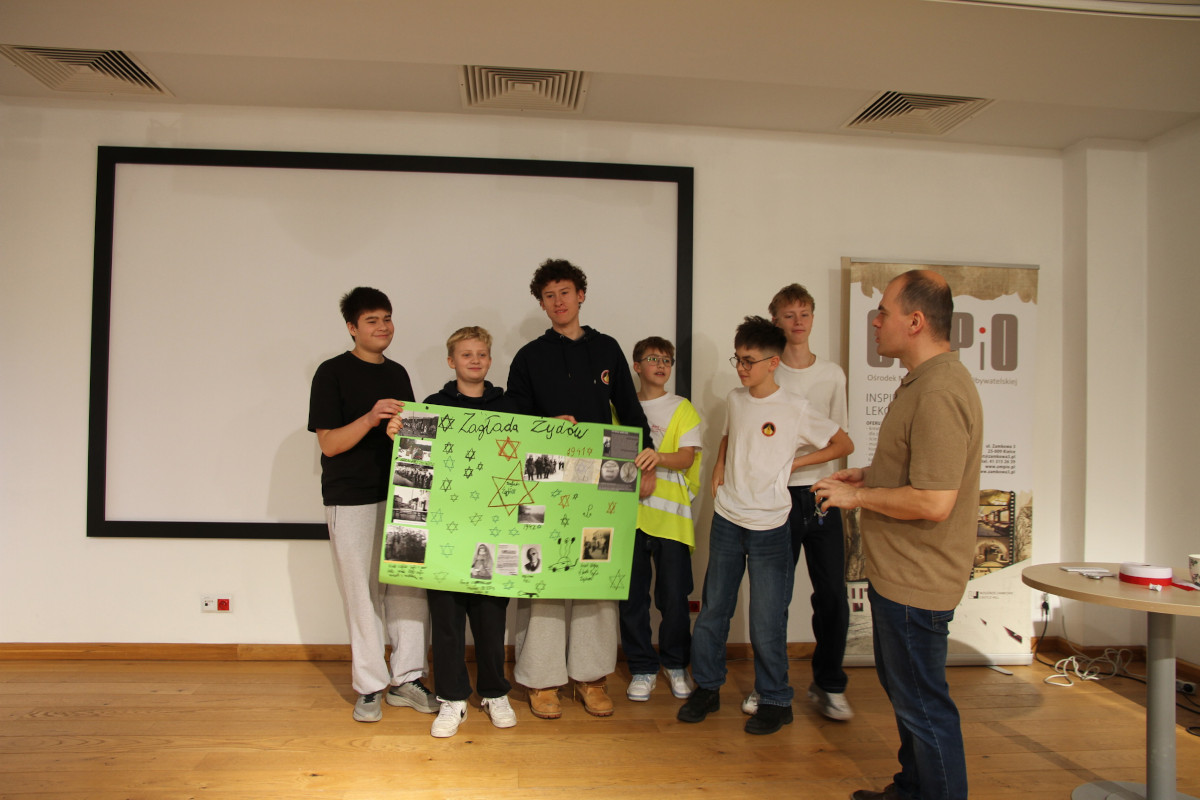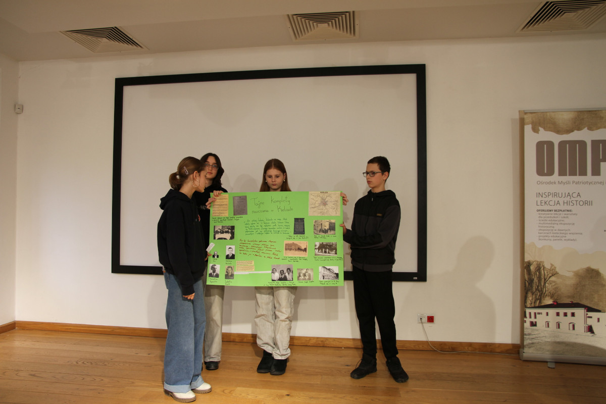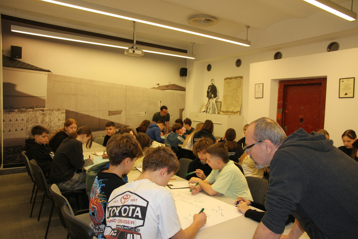 Dwujęzyczna SP Kielcach Opublikowano: 11 grudnia 2025 11 grudnia 2025 r. dwie klasy uczniów z Pierwszej Dwujęzycznej Szkoły Podstawowej w Kielcach zwiedziły dawne więzienie kieleckie i uczestniczyły w warsztatach o II wojnie światowej na kielecczyźnie. Zapraszamy do galerii zdjęć: