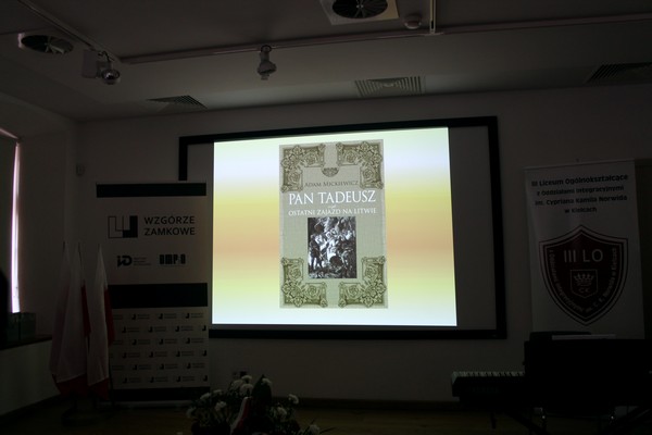 8 listopada 2018 r. młodzież zaprezentowała na sali konferencyjnej OMPiO fragmenty naszej narodowej epopei. Dziesięć osób przeczytało dziesięć wybranych fragmentów „Pana Tadeusza”, by słowami Adama Mickiewicza opowiedzieć o marzeniu Polaków o wolności.