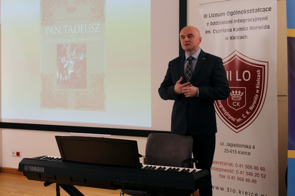 Dzisiejsze wydarzenie w Ośrodku Myśli Patriotycznej i Obywatelskiej to część projektu, zatytułowanego „Centrum polszczyzny”, realizowanego przez III Liceum Ogólnokształcące im. Cypriana Kamila Norwida, we współpracy z sześcioma placówkami ponadgimnazjalnymi w Kielcach oraz Powiatowym Zespołem Szkół w Chęcinach.