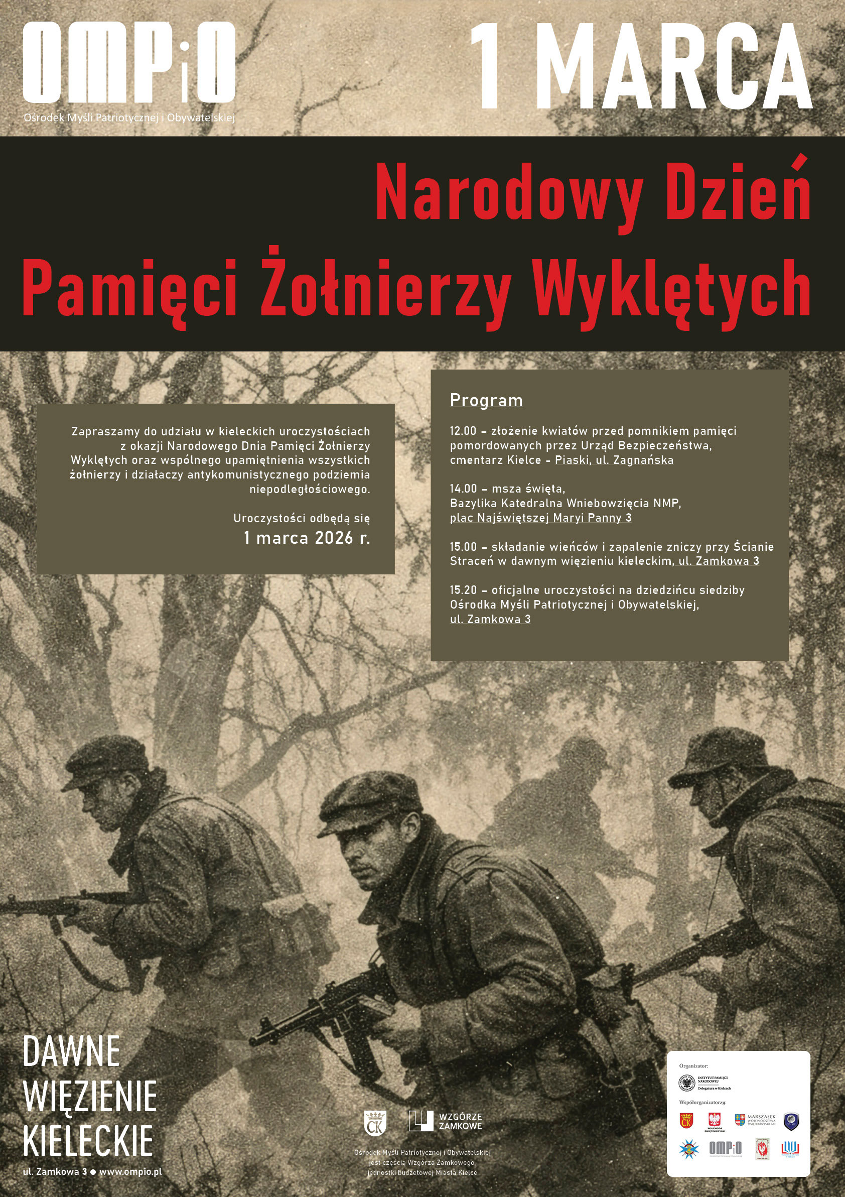 Zapraszamy do udziału w kieleckich uroczystościach z okazji Narodowego Dnia Pamięci Żołnierzy Wyklętych oraz wspólnego upamiętnienia wszystkich żołnierzy i działaczy antykomunistycznego podziemia niepodległościowego.