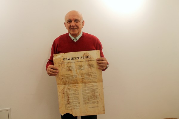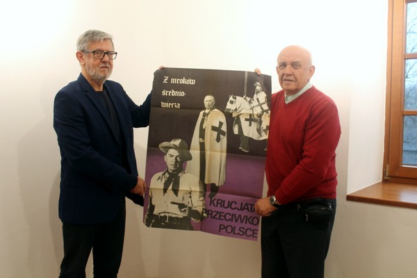 Dzięki panu Zdzisławowi Sabatowi Ośrodek Myśli Patriotycznej i Obywatelskiej wzbogacił się dziś o nowe eksponaty. Pan Zdzisław Sabat, były wiceprezydent Kielc oraz regionalista, przekazał nam plakaty propagandowe z okresu stanu wojennego. Podarowane nam przedmioty są bardzo cenne ponieważ pan Zdzisław zrywał je wraz z żoną z kieleckich ścian i murów podczas tego trudnego okresu w historii Polski.