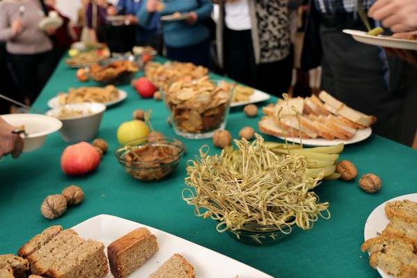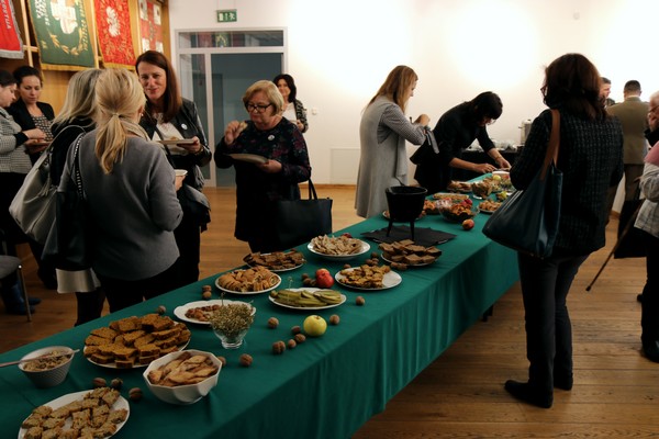 Po oprowadzeniu dyrektorskim szanowni goście mogli zdegustować przekąski z kuchni okupacyjnej według przepisów Elżbiety Kiewnarskiej z 1941 r.