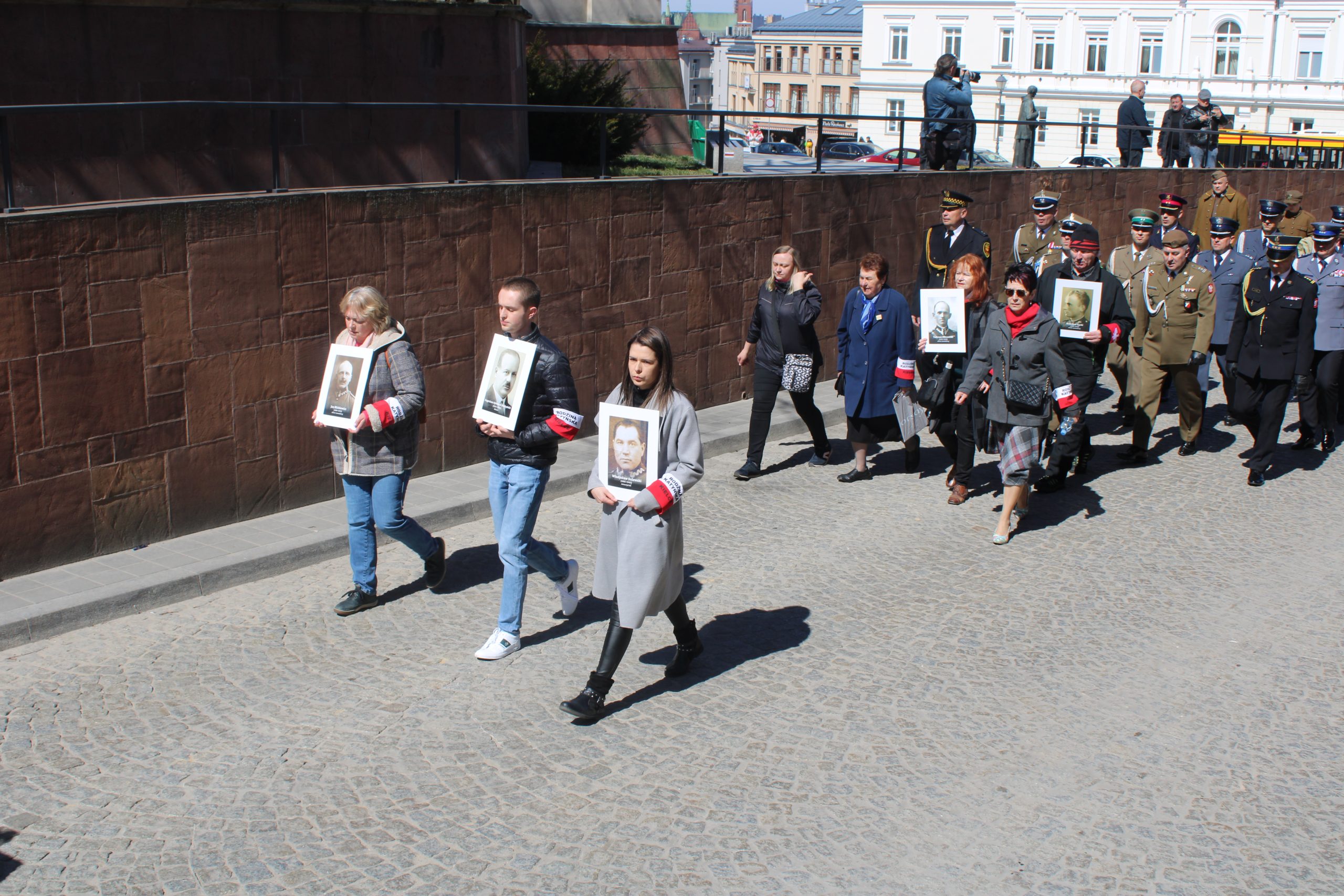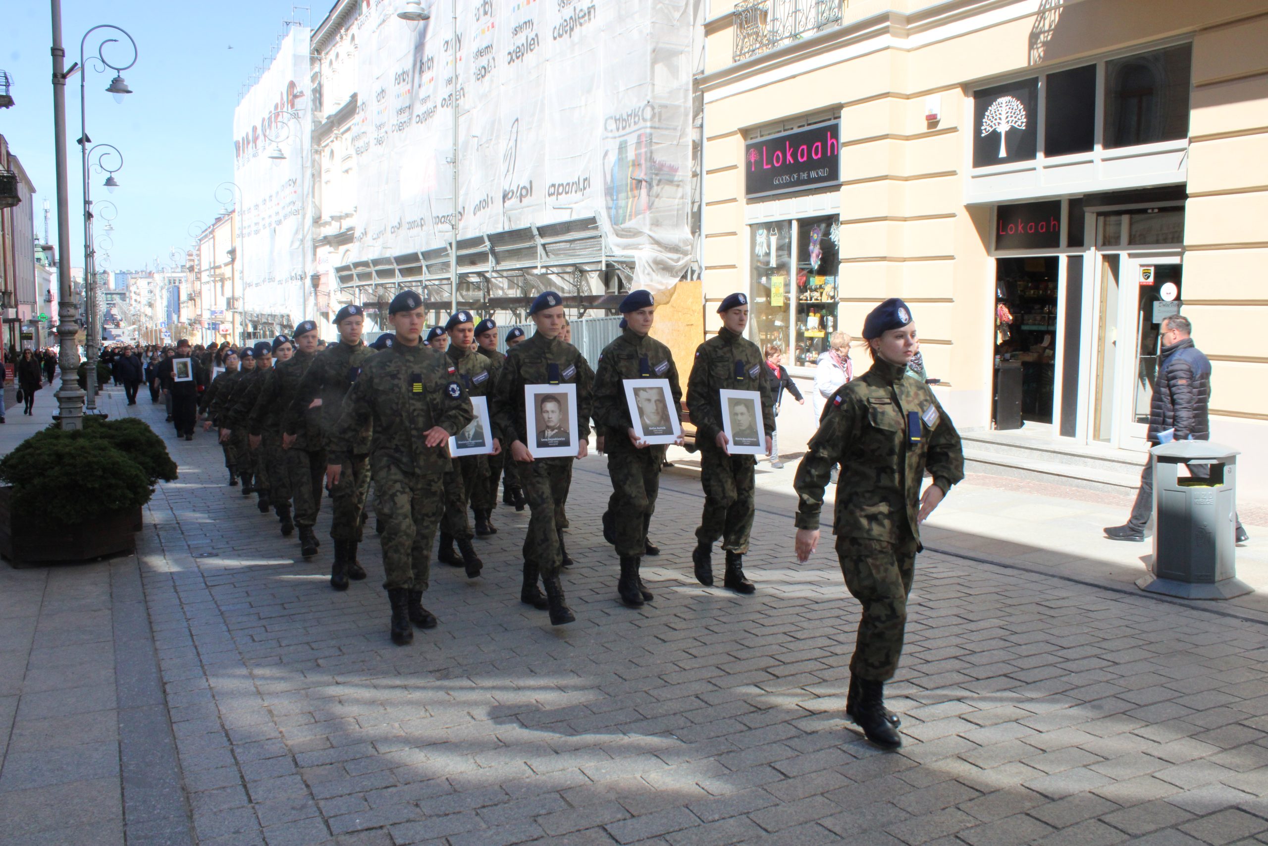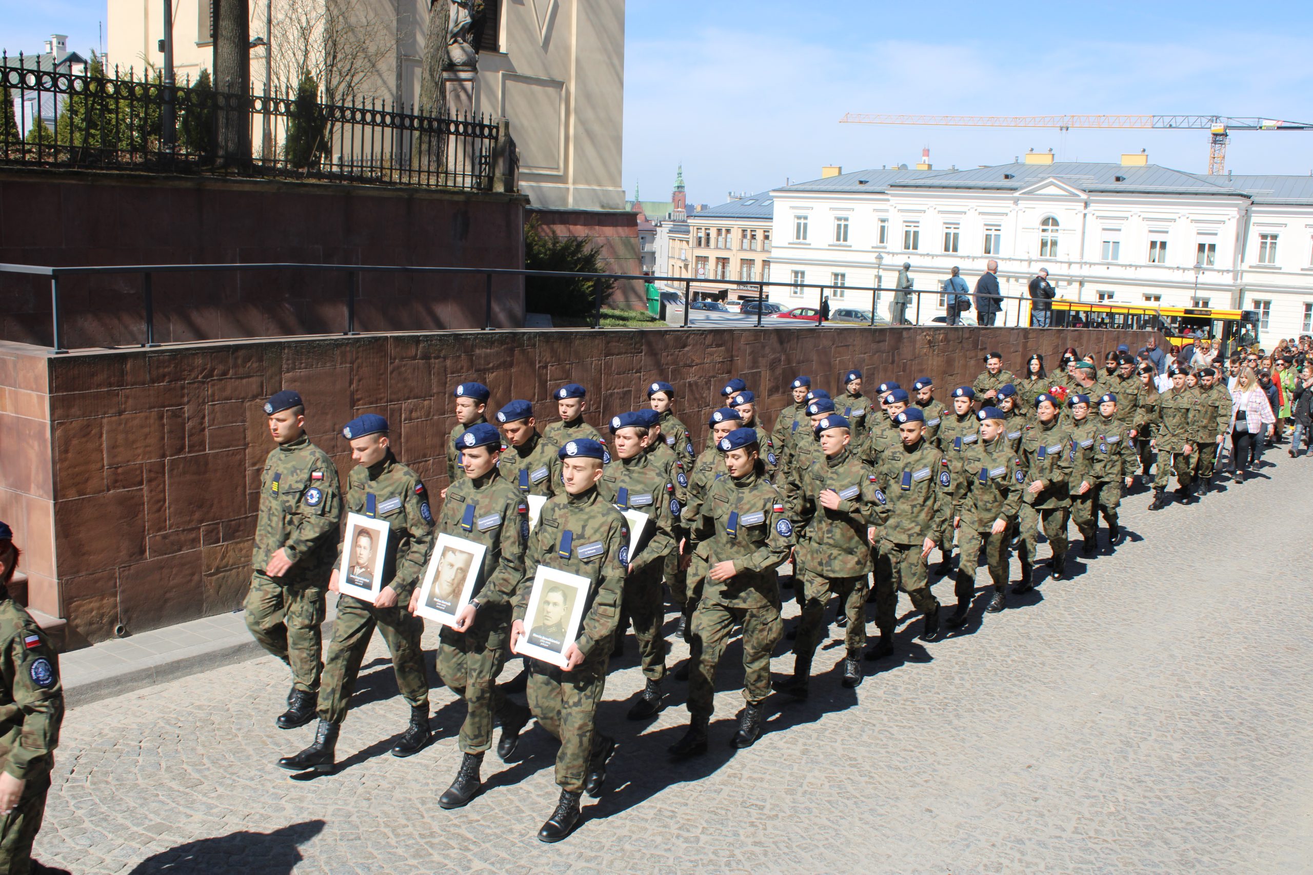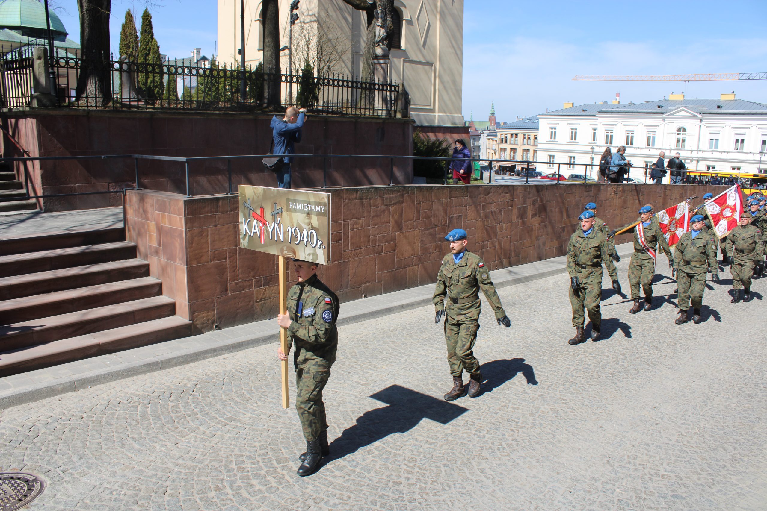 Pochód, utworzony przez polskich żołnierzy, Strażników Ochrony Kolei, członków grup rekonstrukcyjnych oraz młodzież szkolną w historycznych mundurach polskich oficerów oraz pilnujących ich funkcjonariuszy NKWD, w milczeniu przeszedł ulicami Kielc na Skwer Pamięci Ofiar Katynia, gdzie nastąpiło złożenie kwiatów i zapalenie zniczy upamiętniających ofiary Zbrodni Katyńskiej.