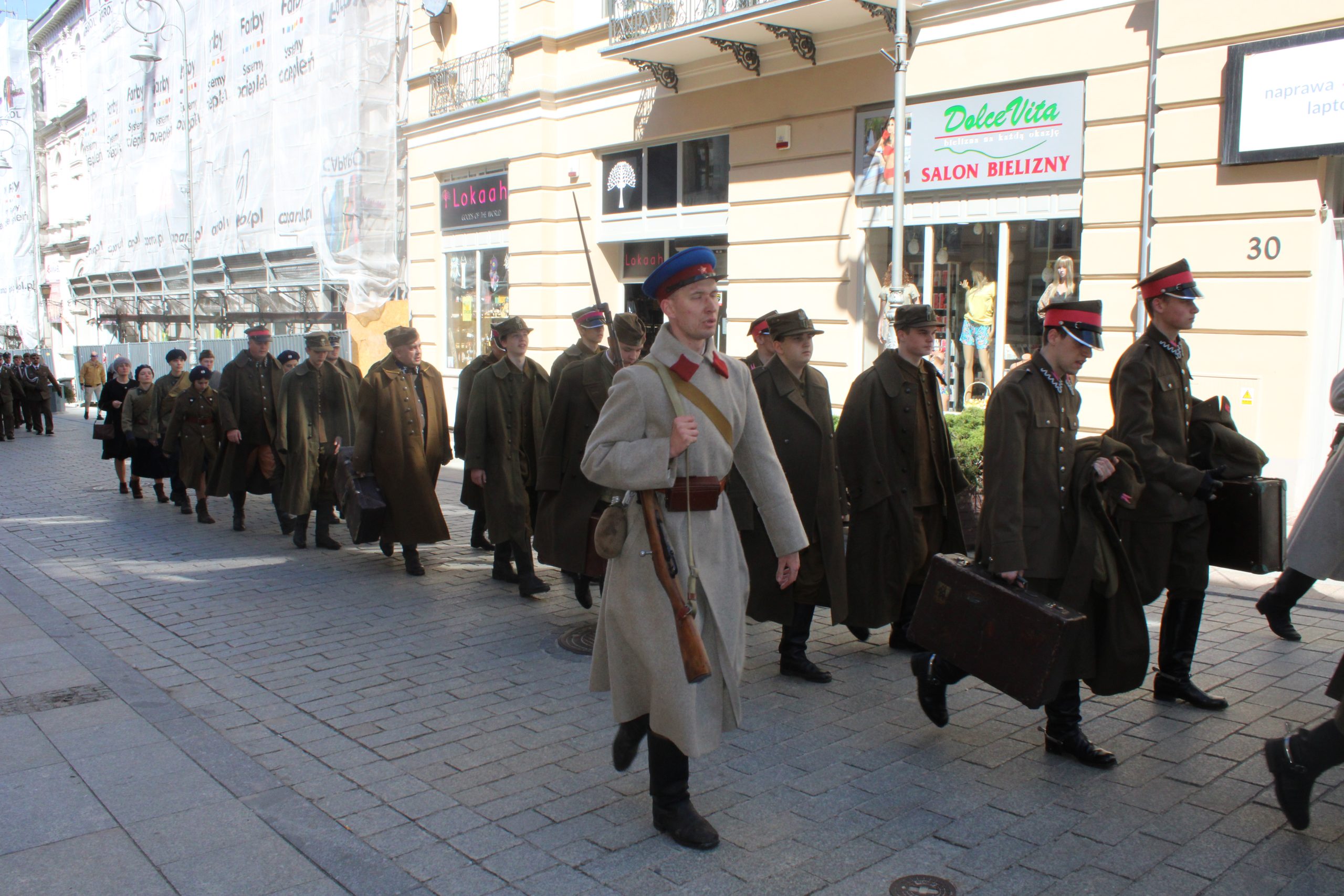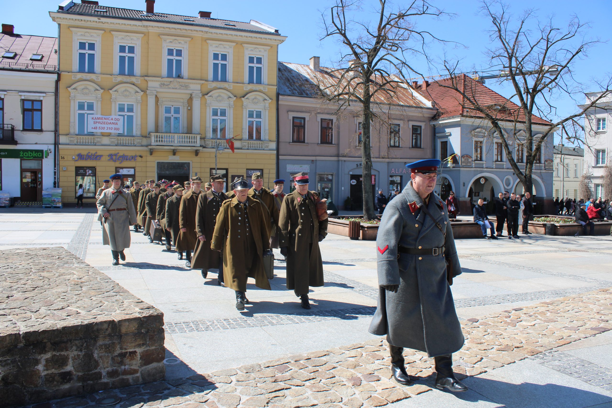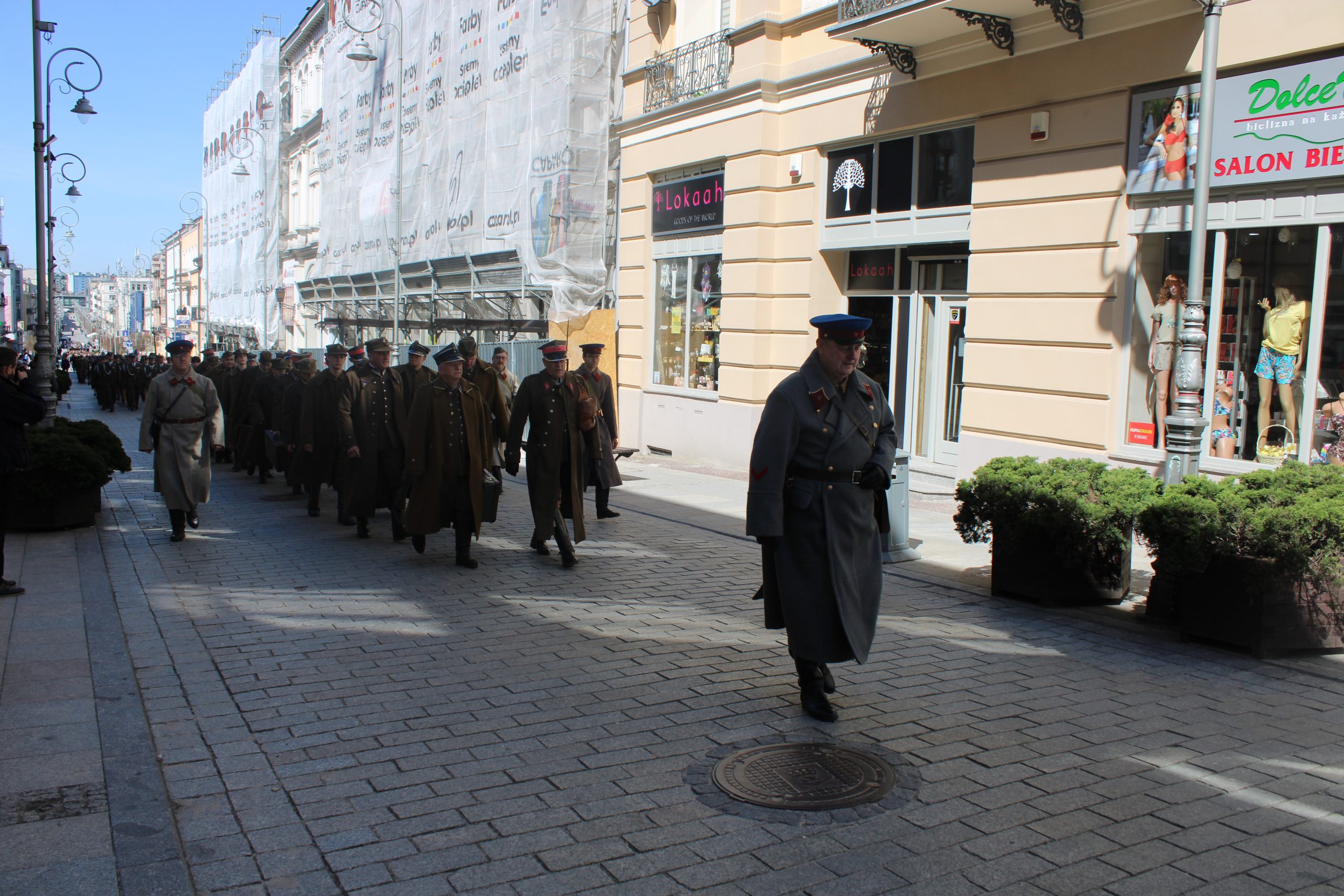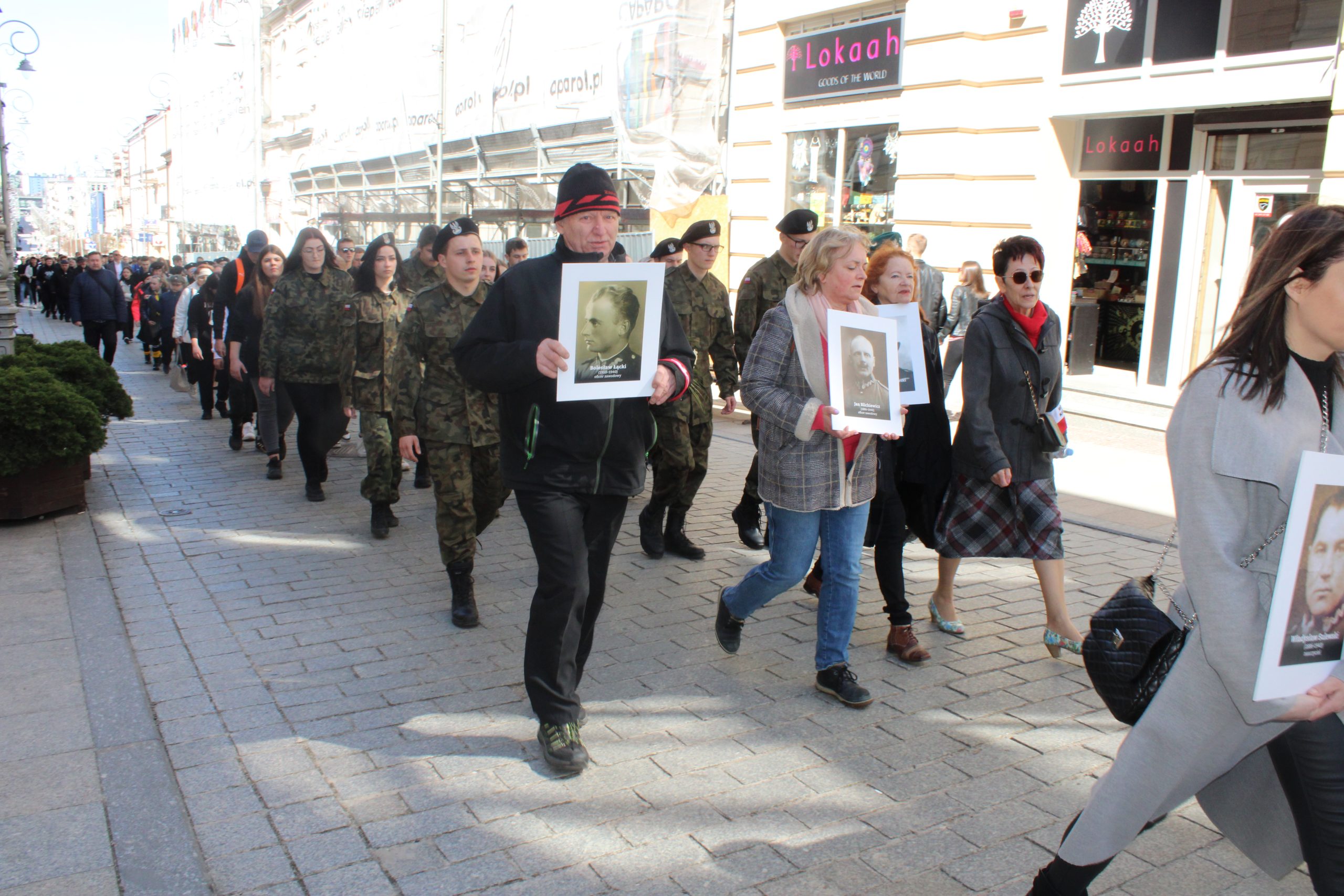 Pochód, utworzony przez polskich żołnierzy, Strażników Ochrony Kolei, członków grup rekonstrukcyjnych oraz młodzież szkolną w historycznych mundurach polskich oficerów oraz pilnujących ich funkcjonariuszy NKWD, w milczeniu przeszedł ulicami Kielc na Skwer Pamięci Ofiar Katynia, gdzie nastąpiło złożenie kwiatów i zapalenie zniczy upamiętniających ofiary Zbrodni Katyńskiej.