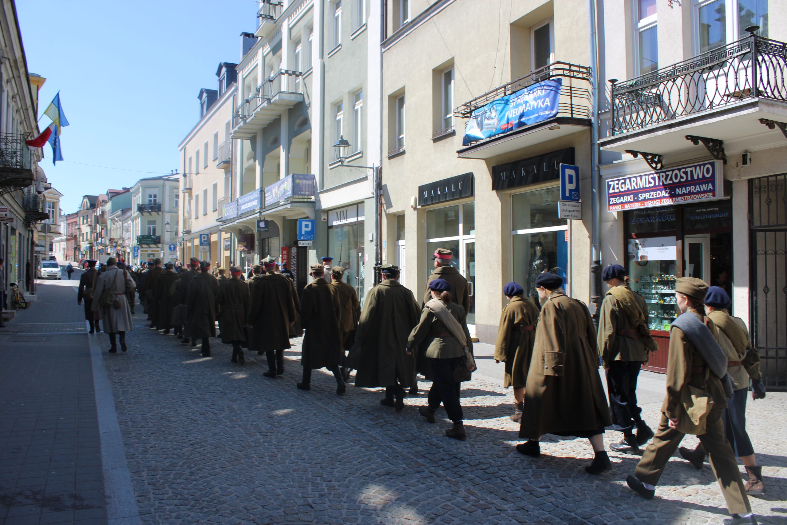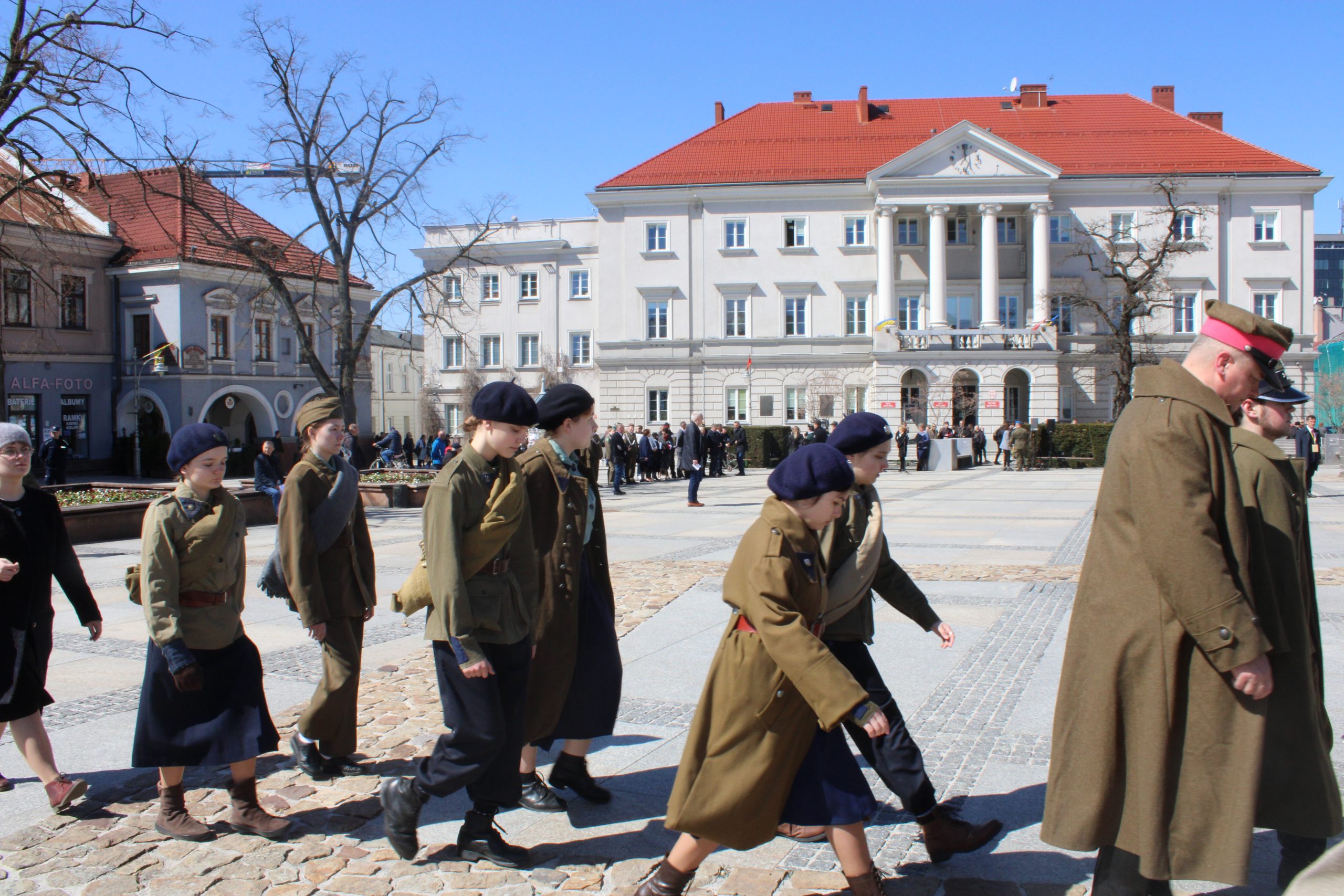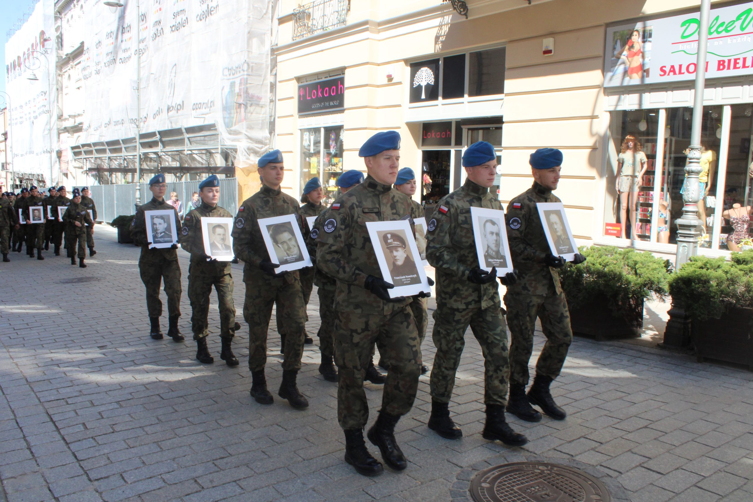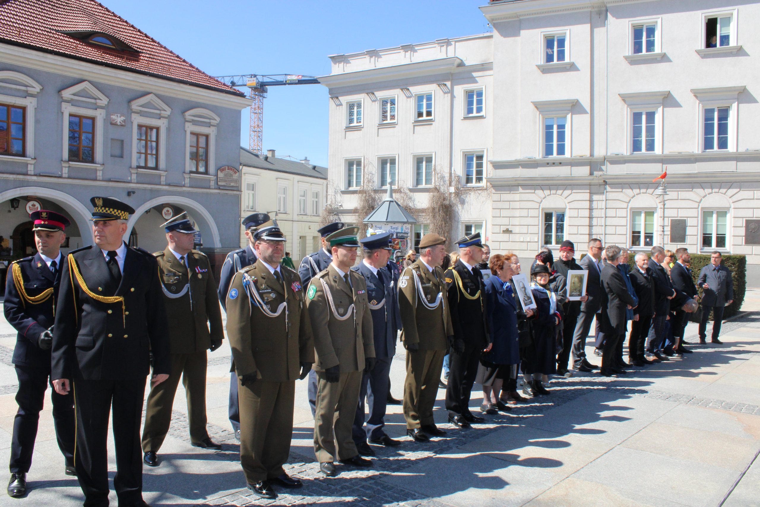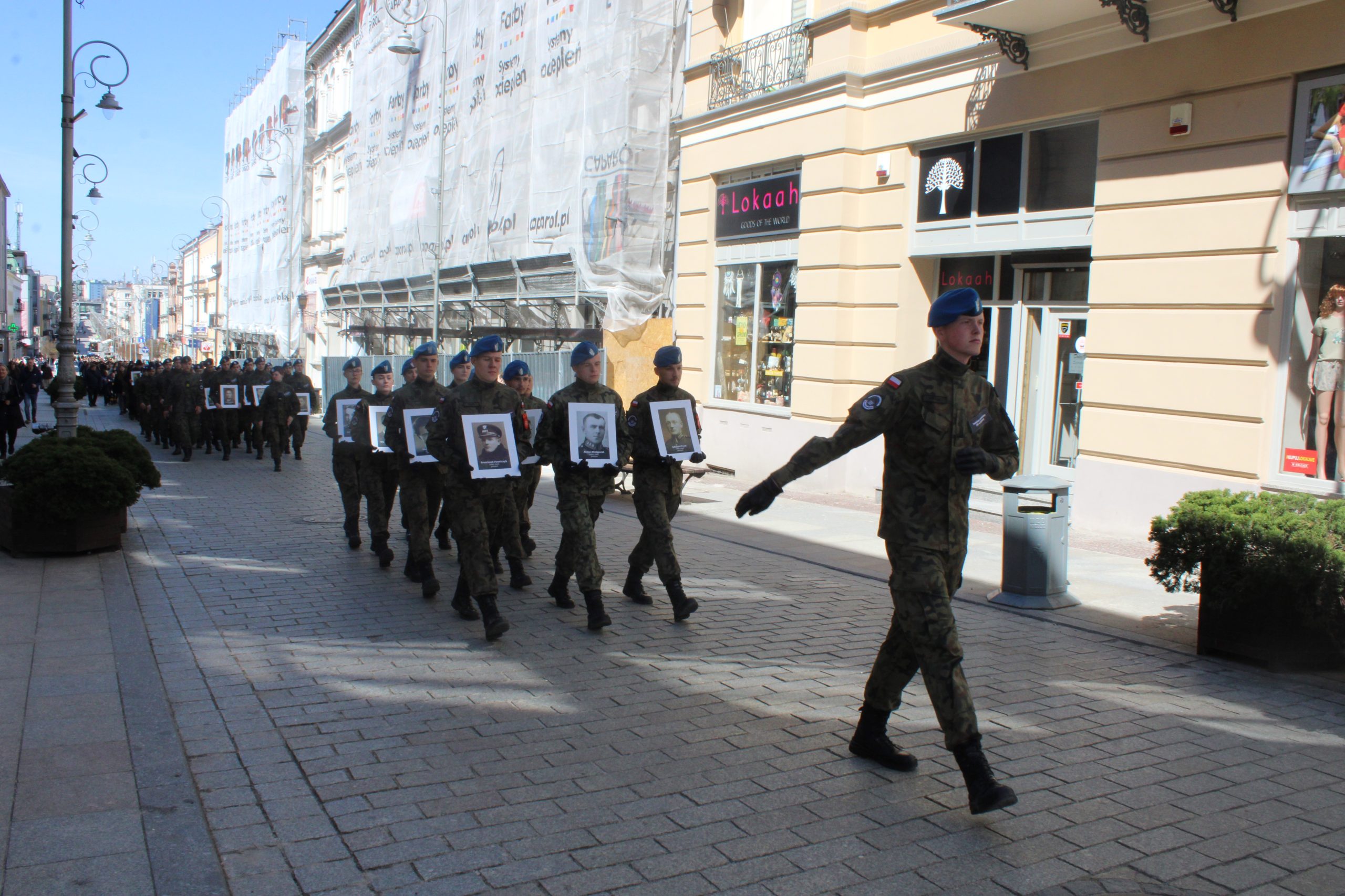Pochód, utworzony przez polskich żołnierzy, Strażników Ochrony Kolei, członków grup rekonstrukcyjnych oraz młodzież szkolną w historycznych mundurach polskich oficerów oraz pilnujących ich funkcjonariuszy NKWD, w milczeniu przeszedł ulicami Kielc na Skwer Pamięci Ofiar Katynia, gdzie nastąpiło złożenie kwiatów i zapalenie zniczy upamiętniających ofiary Zbrodni Katyńskiej.