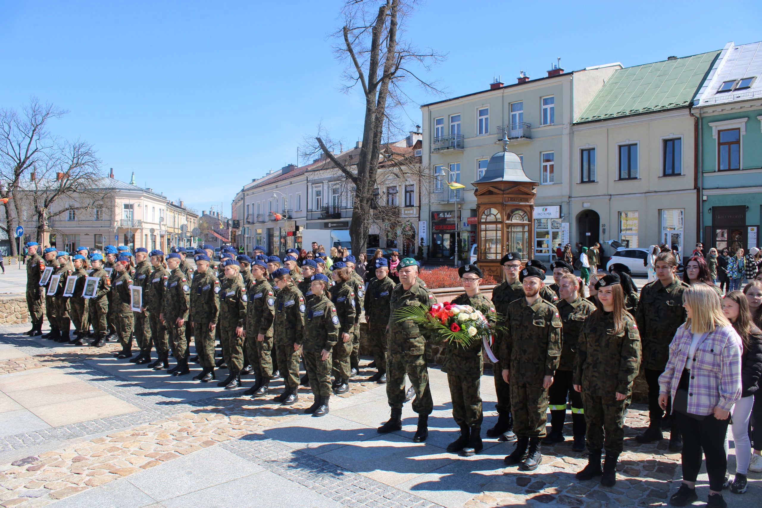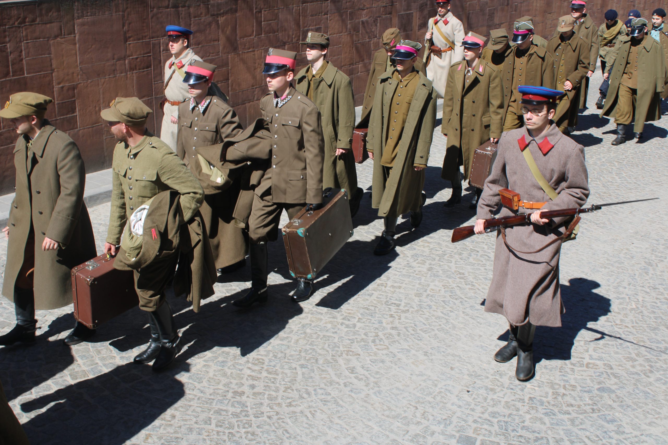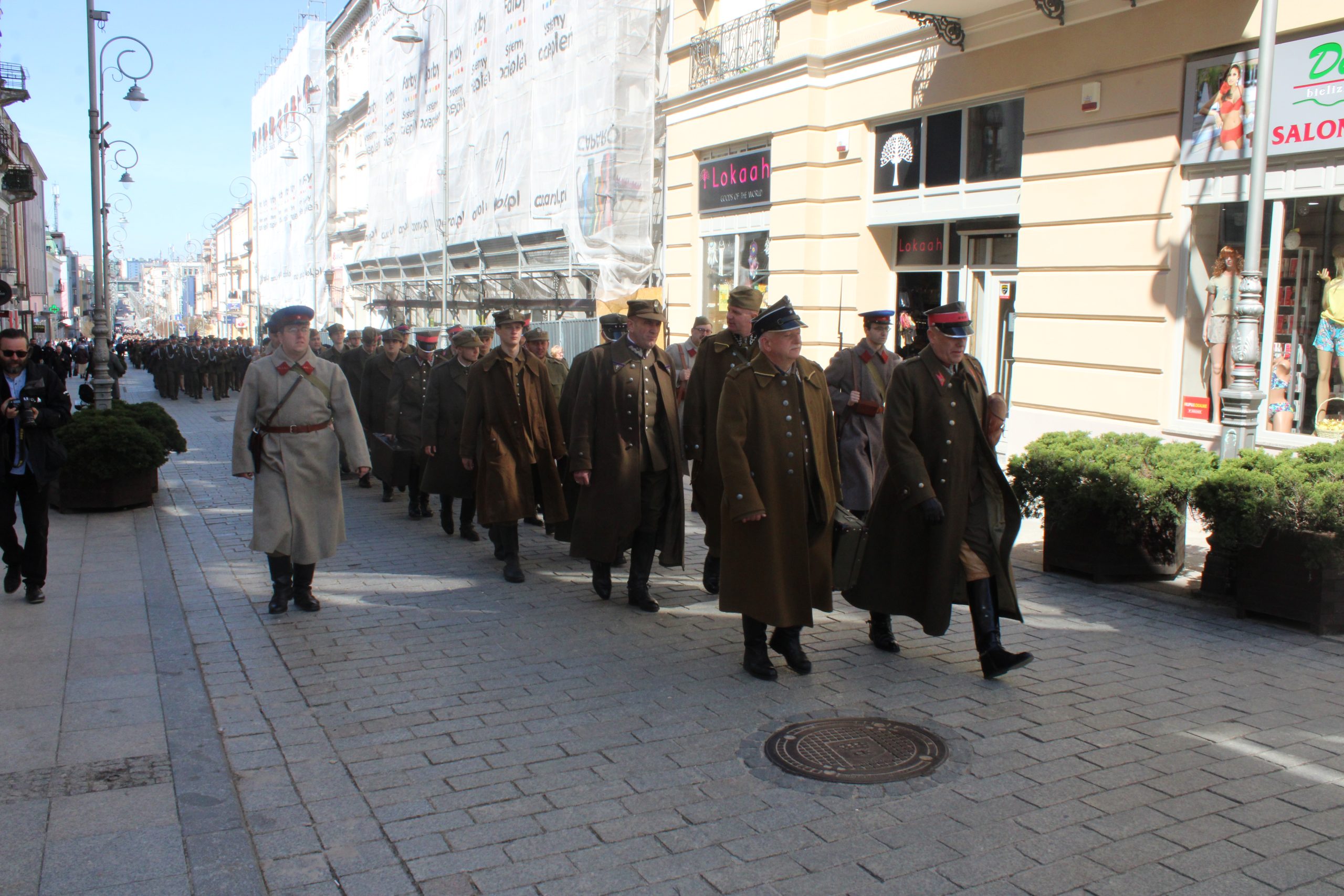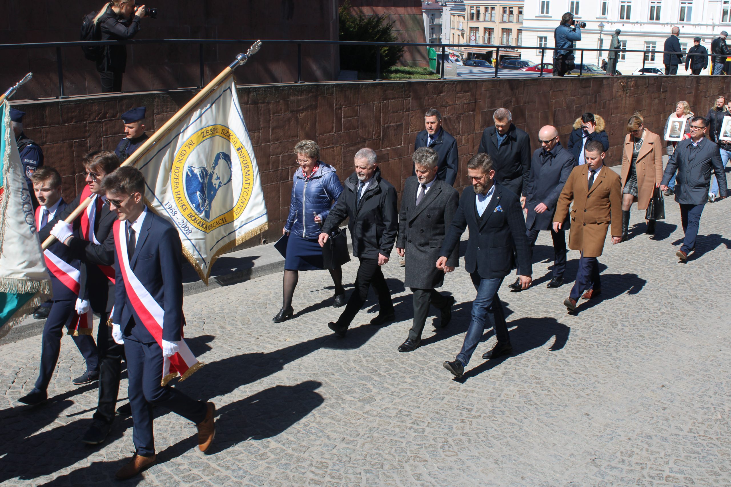 Pochód, utworzony przez polskich żołnierzy, Strażników Ochrony Kolei, członków grup rekonstrukcyjnych oraz młodzież szkolną w historycznych mundurach polskich oficerów oraz pilnujących ich funkcjonariuszy NKWD, w milczeniu przeszedł ulicami Kielc na Skwer Pamięci Ofiar Katynia, gdzie nastąpiło złożenie kwiatów i zapalenie zniczy upamiętniających ofiary Zbrodni Katyńskiej.