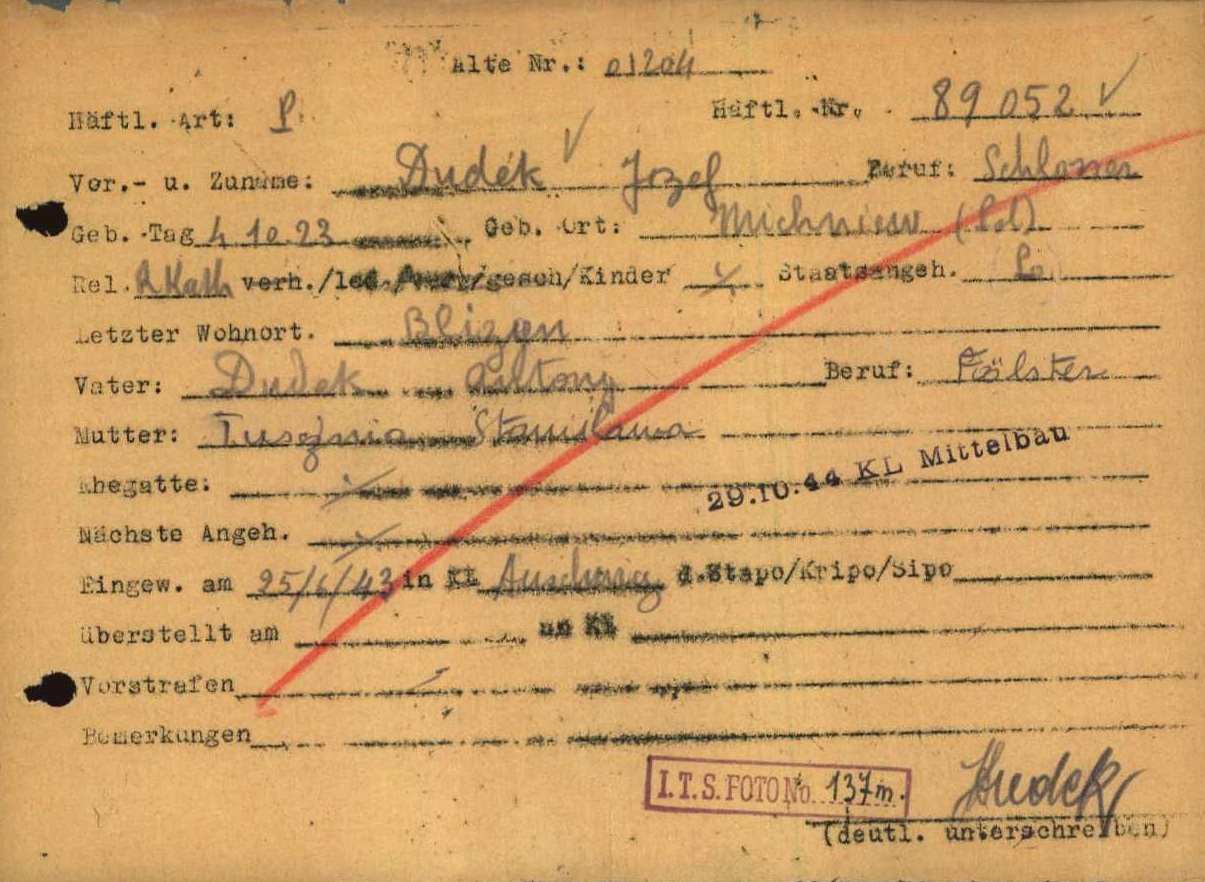 Antoni Dudek (ojciec naszego bohatera) i Franciszek Pawełczyk zginęli po kilkumiesięcznym pobycie w powyższym miejscu. Dwudziestoletni Józef Dudek, który w maju 1944 r. opuścił KL Auschwitz, trafił do komanda Coachem w KL Natzweiler. W późniejszym czasie był przetrzymywany w obozach KL Buchenwald oraz KL Mittelbau, gdzie wiosną 1945 r. doczekał wyzwolenia przez oddziały amerykańskie.